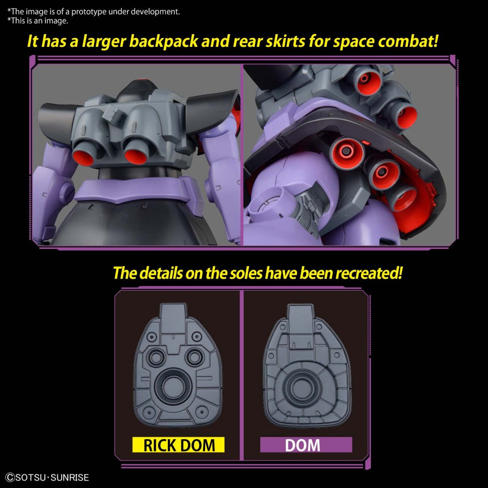 MS-09R Rick Dom rejoins the Master Grade Model Kit Lineup! The newest features included are a larger backpack and rear skirts for space combat! The details on the soles have been recreated to include the unique footprint of the Rick Dom. Set includes: Heat Saber x 1, Giant Bazooka x 1, Beam Bazooka x 1, water slide decal x1 , and jewel seal x 1.
